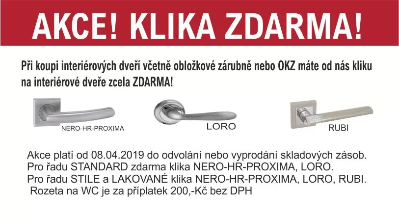 Při koupi interiérových dveří včetně obložkové zárubně nebo OKZ máte od nás kliku na interiérové dveře zcela Zdarma!