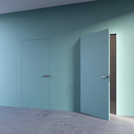 Bezobložkové dveře pro skryté zárubně jsou vyráběny v provedení bezfalcovém nebo s obráceným falcem, to podle směru otevírání. Tato dveřní křídla mají masivní dřevěný rám s výplní papírovou voštinou nebo izolační dřevovláknitou deskou Homalight a opláštěna jsou MDF deskami. Povrch dveří je možno přemalovat nebo polepit tapetou, a tak se stanou neviditelnou součástí zdi. Nebo mohou být dveře opatřeny dekorem z řady vysoce odolných povrchů PREMIUM.