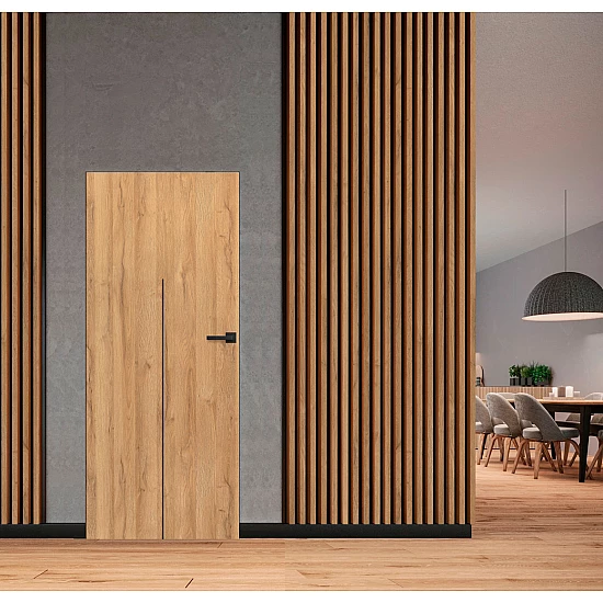 Bezobložkové dveře pro skryté zárubně jsou vyráběny v provedení bezfalcovém nebo s obráceným falcem, to podle směru otevírání. Tato dveřní křídla mají masivní dřevěný rám s výplní papírovou voštinou nebo izolační dřevovláknitou deskou Homalight a opláštěna jsou MDF deskami. Povrch dveří je možno přemalovat nebo polepit tapetou, a tak se stanou neviditelnou součástí zdi. Nebo mohou být dveře opatřeny dekorem z řady vysoce odolných povrchů PREMIUM.