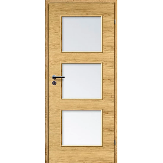 - Dveře s deskovou konstrukcí, pokryté přírodní dýhou.