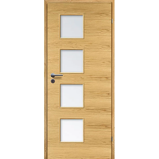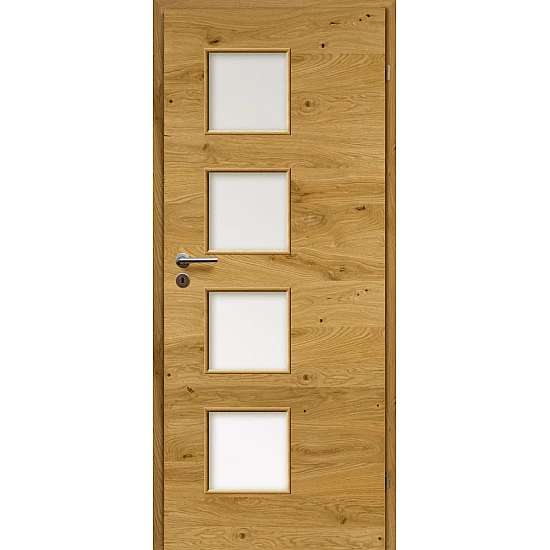 - Dveře s deskovou konstrukcí, pokryté přírodní dýhou.