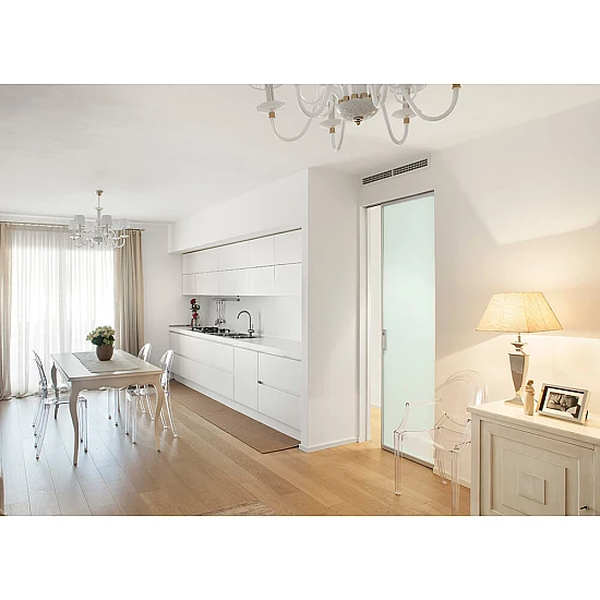 Jde o typ bezobložkového stavebního pouzdra pro jednokřídlé posuvné dveře. Toto moderní provedení Vám učaruje elegancí a nadchne i nejnáročnější zákazníky. Vhodné zejména pro spojení pokoje, šatny, komory nebo pracovny.