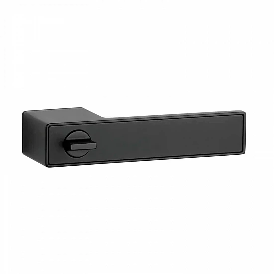 Rozetová klika na interiérové dveře s elegantní obdélníkovou rozetou je vyrobena z materiálů vysoké kvality - zamak a je povrchově upravena - černý matný elox.