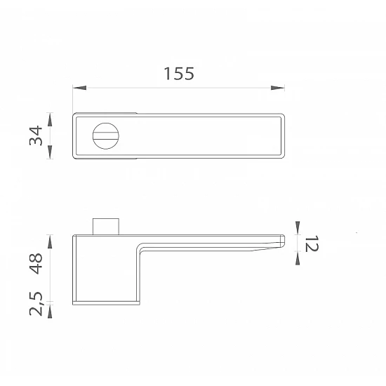 Rozeta má rozměry 48 mm x 34 mm. Je tenká jen 2,7 mm a stává se tak téměř neviditelnou součástí designu kliky.