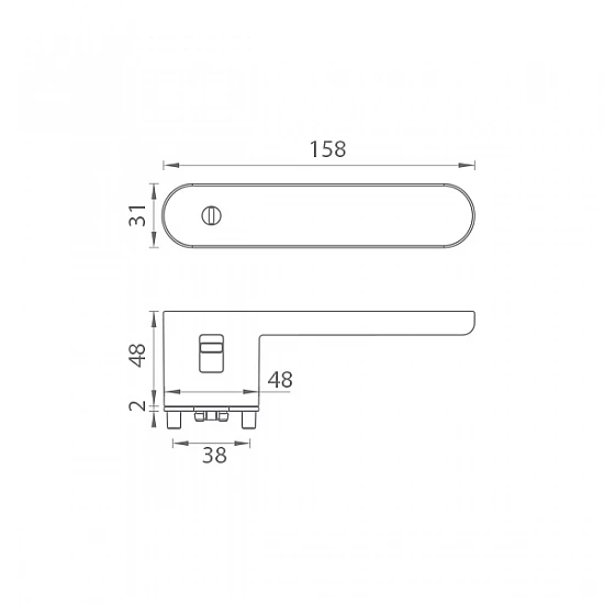 Rozetová klika na interiérové dveře s obdélníkovou rozetou je vyrobena z materiálů vysoké kvality - zamak a je povrchově upravena. Rozeta má rozměry 48 mm x 31 mm a tloušťku 2 mm. Samotná rozeta je součástí designu kliky.