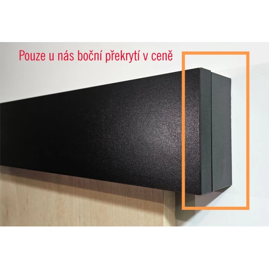 Model MARTI PLUS se liší od ostatních tím, že garnýž dveří je v černém odstínu. Součástí kompletu jsou čtyři černé nalepovací proužky a lze zvolit libovolný typ uchycení dveří.
