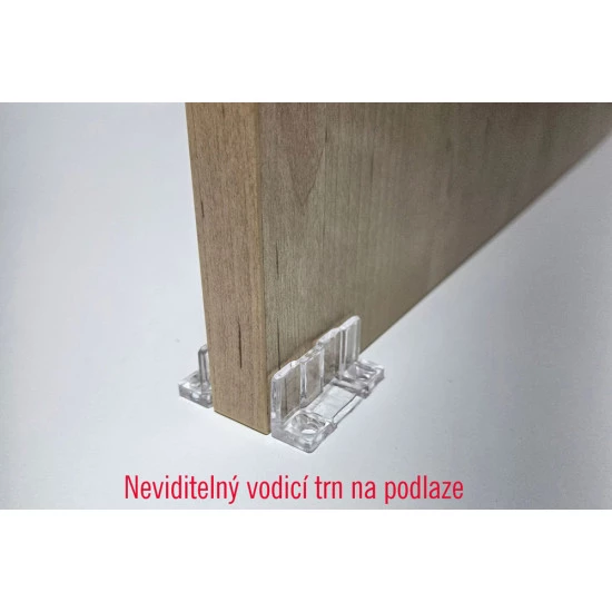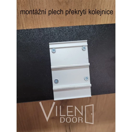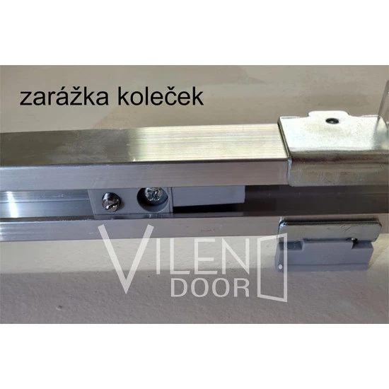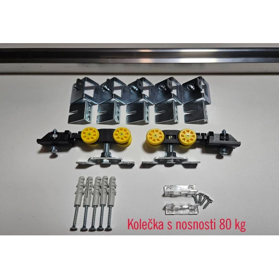 Součástí sady je hliníková kolejnice včetně koleček s nosnosti až 80 kg a dlouhou životnosti, spodní vodící trn, montážní držáky, přední překrytí.