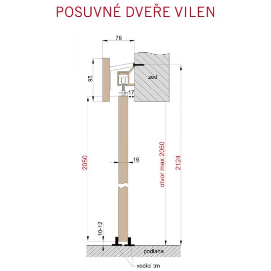 Montáž: Zcela jednoduchá montáž posuvných dveří, kterou zvládne každý kutil, viz přiložený montážní návod. Montáž bez možnosti slepé zárubně, pouze na začištěný stavební otvor s max. výškou 205 cm.