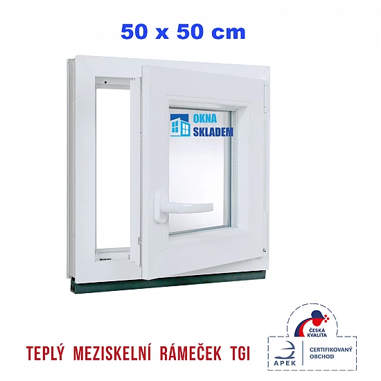 Plastové okno | 50x50 cm (500x500 mm) | Pravé| Bílé | jednokřídlé | Teplý meziskelní rámeček