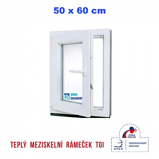 Plastové okno | 50x60 cm (500x600 mm) | Levé| Bílé | jednokřídlé