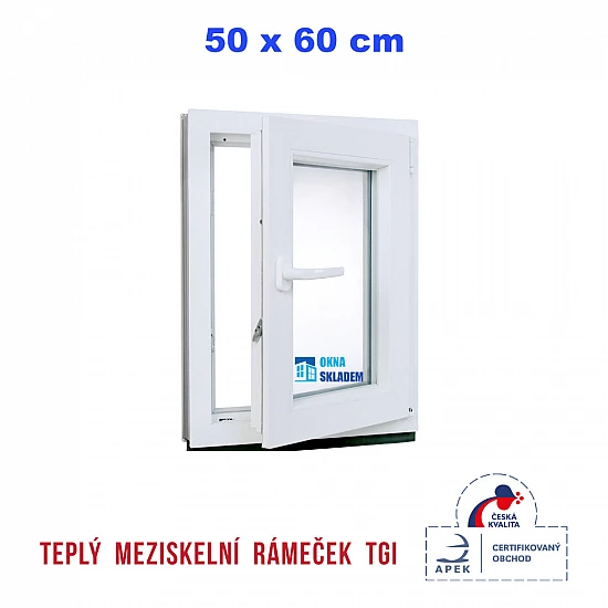 Plastové okno | 50x60 cm (500x600 mm) | Pravé| Bílé | jednokřídlé