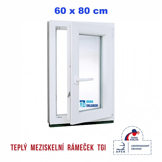 Plastové okno | 60x80 cm (600x800 mm) | Pravé| Bílé | jednokřídlé | Teplý meziskelní rámeček