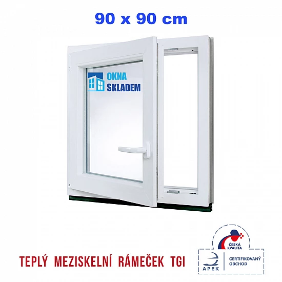 Plastové okno | 90x90 cm (900x900 mm) | Levé | Bílé / Antracit | jednokřídlé